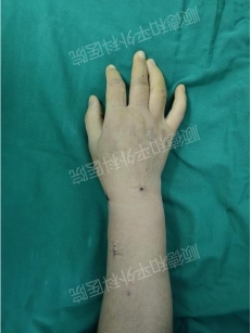 治疗方案:关节镜辅助下桡骨远端骨折复位+可吸收螺钉+克氏针内固定术。手术仅1小时,创口微小,术后肿胀轻,疼痛显著减轻。患者快速康复,家属反馈:“终于不用看她天天忍痛了!”